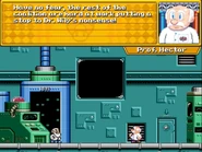After the player clears the level for the first time, a cutscene into Dr. Light's lab is seen where Professor Hector had received a distress call. He enters the lab and greets Dr. Light but soon realizes that something isn't right. He attempts to check on him only to be zapped unconscious.