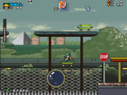 This level is a mashup of The World Ends with You and Jet Set Radio, with the Noise being a primary enemy. The player can ride on skateboards to traverse far distances and break barriers. Along the way, they search for Pipo Monkeys and encounter Noise Symbols, in which the player can jump into otherworldly dimensions by coming in contact with them (some of them are required for obtaining Red Coins!).