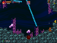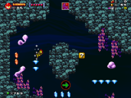 Charged Reef Maze is a Battle Level located in World 5: Gehenna in Mushroom Kingdom Fusion. Located in the Outer Gehenna section, there is a swimming challenge, where the player must carefully swim through a maze of Goos, Firebars, and Electric Seaweed.