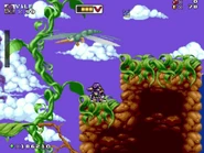 Colossal Cloudland is the 11th level in the seventh world, Isle of Genesis. It is based on both the 1994 video game Mr. Nutz, which was released for both the SNES and Sega Genesis/Mega Drive, and the beanstalk level from Mickey Mania: The Timeless Adventures of Mickey Mouse, another 1994 video game released on the SNES, Genesis/Mega Drive and the Sega CD.