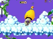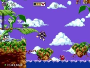 Afterwards, the player makes it on the top and going through a checkpoint room. The second main area is based on the Clouds level from Mr. Nutz. The player will go from left to right on each clouds while battling a greater numbers of enemies.