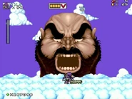 The last room is a boss battle against Ograoum Papas from Mr. Nutz, who is now the new ruler of this beanstalk world. After Papas is defeated, he falls from the sky to the ground below and the level is cleared as the player will be on their next trip to Little Planet.