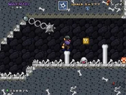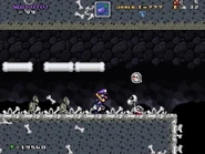 - The tombstone that is seen on the map for this level is similar to the ones seen in the Pumpkin Zone map from Super Mario Land 2: 6 Golden Coins.