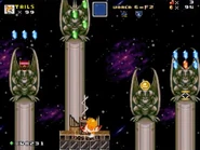 After reaching a short checkpoint area, the level ends with a tough showdown against the boss of the level, the Lord of Luna. Defeating him clears the level for the player.