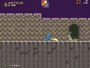 The second area has the player jumping over the lava and climbing on the fence while avoiding the various fire hazards, such as Podoboos, Firebars, and Lava Geysers, before entering a pipe to the next area.