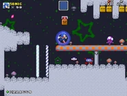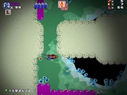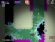 • This level originally had a water section, where the player had to swim while avoiding poisonous bubbles, but was removed after the level was revamped.