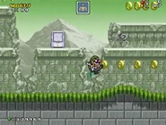 Act 1 is very straightforward as the player battles a wide range of enemies, such as big zombies, yellow reptile creatures and several of Dr. Eggman's Badniks. Also, there are springs and hidden walls throughout the area and the player can use them to collect rings, rupees and red coins.