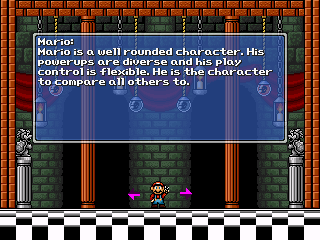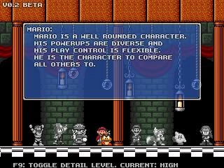 - Before version v0.5, the character select screen was different. The player would select a playable character by controlling a Goomba.