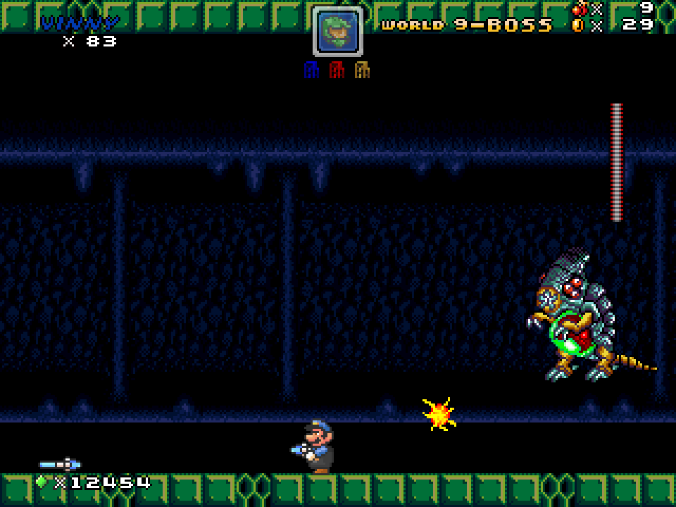 - August 30, 2023: v0.85 Tangerine - (SAGE 2023) is available to download on itch! Fixes several bugs, adds a few new levels, and Samus becomes the newest playable character added to the game.