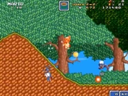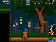 In this fairly simple level, the player ventures off in a forest while battling enemies mostly from the Mario universe.
