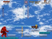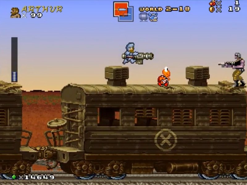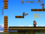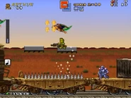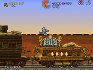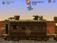 The player will have to battle many soldiers, tanks, and helicopters guarding this train, alongside the animals enemies like Sparrows flying by and large mutant yellow rats. At the end, the player makes it to the train engine and jumps to the spring.