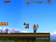 - In older versions of MKF, the following enemies were present in this level but have been removed in the latest version: Abobo from Double Dragon, and Angry Sun. However, they were reused (after being re-skinned) for the World 5: Gehenna level Desert Edifice, which basically became a retiled version of the original Transsiberian Trek.