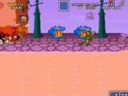 Aside from an array of jumping enemies to evade, such as Nipper Plants and Chargin' Chucks, the player must maneuver around the piles of crates, which can be packed very tall, to keep ahead of the bulls. The crates are not a safe haven, however, since the bulls can smash through them.