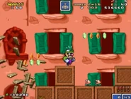 - This level originally had red Ninjis, which behaved like the Super Mario World ones that could be stomped to be defeated instead of being carriable like the Super Mario Bros. 2 ones, but were removed.
