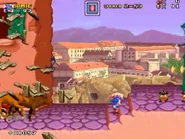 The player will participate in Spain's most famous event, the Running of the Bulls. The player, along with the several enemies located here, must run for their lives as the Bulls have been unleased, chasing the player down across the streets of Pamplona and destroying anything in their path. Touching the bulls in any way will instantly kill the player, so keep running until the end is reached.