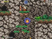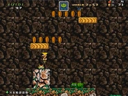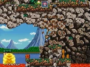 The first two areas are hugely non-linear as the player explores the outside of the mountain while dealing with the prehistoric-themed enemies, such as Rexes, Terrordons, Al E. Gators and Ogres. There are also a few small small caves throughout the level, where the player can find hidden coins, rupees and power-ups.