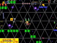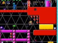 Strewn throughout the level are the various items and foodstuffs that were found throughout the original game (collecting these simply adds to the player's overall score). Also scattered throughout the level are vials of Vitalin, which function as coins for the level. Various signs can be found on the walls in various places as well, each one written in "Standard Galactic Alphabet", the fictional language made up for the Commander Keen series. The player can also find the occasional Raygun, a simple energy pistol capable of firing five shots, laying around for them to use.