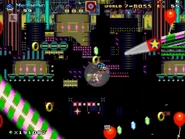 Act 2 takes place back in the mechanical city, which now consists of a carnival theme around it as the Death Egg was launched into space with Dr. Eggman and his Badnik army celebrating with confetti balloons and lights flashing all over the place. This is one huge area around the rollercoaster track that the player has to explore while fighting though the many different types of Badniks and using the flippers to get to higher ground while avoiding the bumpers and spikes.