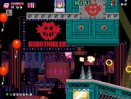The last area of Act 1 is based on the bad future version of Metallic Madness Zone from Sonic CD. It takes place in the purple, mechanical underground area of the city, which is full of rusty old machines and some of the lights are barely functional. The player will battle even more Badniks, such as the Eggrobos, Needlenoses, and Spikes, while avoiding the brown, rusty saw blades once again. At the end of the area, the last Sonic doppelganger known as Mecha Sonic appears from the top and prepares to attack. After taking enough damage, Mecha Sonic will kneel down as his body starts to malfunction a bit before retreating as the player will use the spring to get to Act 2.