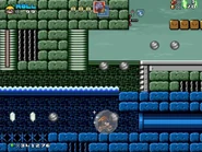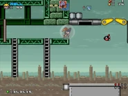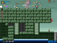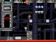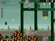 The second section has the player go inside the junkyard building. In addition to dealing with more enemies, the player must deal with various obstacles, such as Dust Blocks that fall down and can crush the player and Appearing Blocks that disappear and reappear in a pattern.