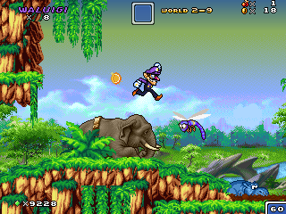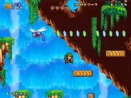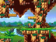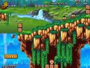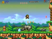 The second main area has the player climbing on the waterfall, where they have to get from platform to platform while dealing with the animals in the way. Once the player reaches the top of the waterfall, they have to deal with the rhino one last time. Afterwards, the flagpole awaits and the level is clear as the next destination is the desert of Sahara, Sahara Scramble.