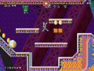 Snowy Tower is a Battle Level located in World 8: Avenue of Memories. It is based on the arcade game Snow Bros. A Fire Spitter is patrolling the area and the player must fight it alongside other Snow Bros enemies such as Snow Devil, Yellow Monkey and Tornado Guy. The enemies in this area are impervious to damage, so the player must use an ice rod to freeze the enemies into snowballs that they can then roll into other enemies.