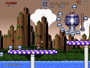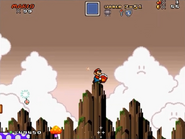 After escaping the flurry of toxic spores, the player will find themselves in an auto-scrolling area above raised mushroom platforms, where they will be forced to do battle against the Egg Shroom, a unique machine piloted by the Egg Robo. The Egg Shroom uses the environment's numerous Poison Mushrooms to its advantage, dropping a vast number of them in the player's path. After the Eggrobo is defeated and the level has completed, a battleship passes by the sky as the player hops aboard Tails' Tornado biplane for a chase to the next level: Winged Fortress Zone.