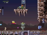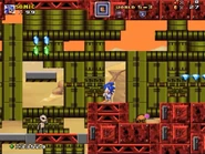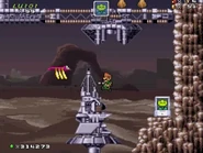 The final level part will be a down-scrolling section where the player will encounter many strong enemies, such as Gordeas and Bio-Drones. Take advantage of the weapons lying around to overcome these last obstacles before finally reaching the flagpole.