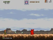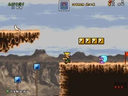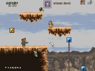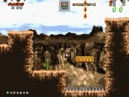 The main area of this level take place outside in daylight with the view of the Colorado River in the background. The player does some more platforming and exploring while fighting some Mario enemies, local animals and a few soldiers that attack them with realistic looking weapons. At the end, the player jump on a ? Block to reveal a ladder. From there, they climb up to the last area, which features a flagpole to complete the level.