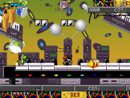 Tonedeaf Throughway is a Battle Level based on Zool, located in World 7: Isle of Genesis and found in the Metro Zones section.