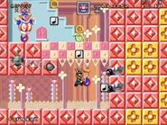 The player must travel to this toy world parade while dealing with the toy theme enemies like toy soldiers, toy airplanes, Jack-in-the-Boxes and clowns on unicycles, which require multiple hits to take down. The unicycles ridden by clowns can be used as shells to take out other enemies, such as Goombas dressed as clowns and Balloonboo robots trying to blend in with the other normal balloons for a surprise attack.