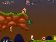 Worms are artillery-obsessed animals that battle in an endless war zone. Many Worms are armed with various weapons and will not only attack the player, but they will also attack themselves. If the player defeats a Worm, it will bring out a TNT detonator box and blow itself up. The explosion will hurt the player and if he or she is within range so it is best to stay clear. The explosion will also defeat other Worm enemies or trigger an explosion from an Oil Drum or Land Mine.